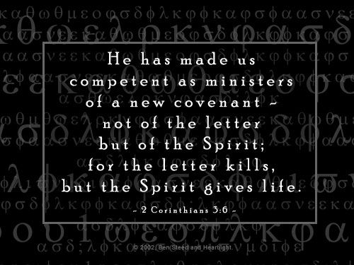 He has made us competent as ministers of a new covenant–not of the letter but of the Spirit; for the letter kills, but the Spirit gives life. 2 Corinthians 3:6