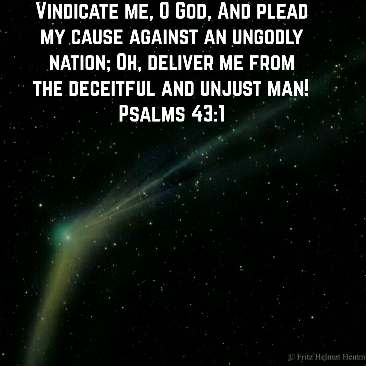 Vindicate Me 5 Replies http://bible.com/114/psa.43.1.NKJV Share this: Click to share on X (Opens in new window) X Click to share on Facebook (Opens in new window) Facebook Like Loading... Related