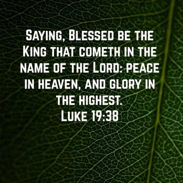 When he came near the place where the road goes down the Mount of Olives, the whole crowd of disciples began joyfully to praise God in loud voices for all the miracles they had seen:”Blessed is the king who comes in the name of the Lord!” “Peace in heaven and glory in the highest!” Luke 19:37-38
