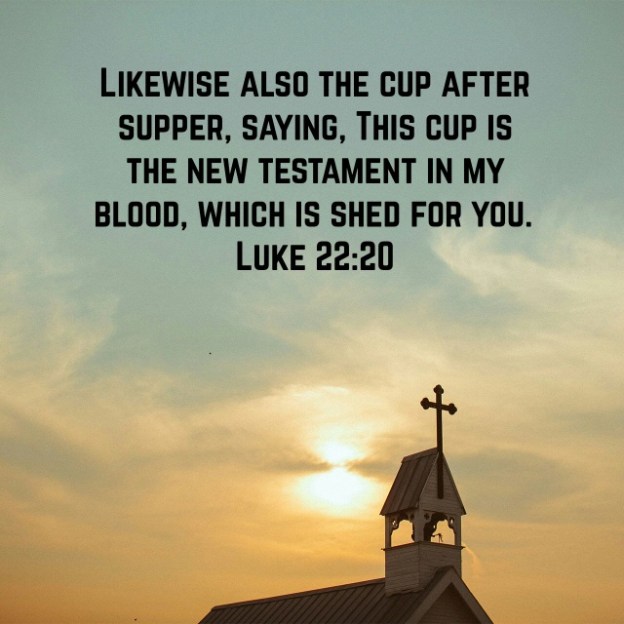 Likewise also the cup after supper, saying, This cup is the new testament in my blood, which is shed for you. Luke 22:20