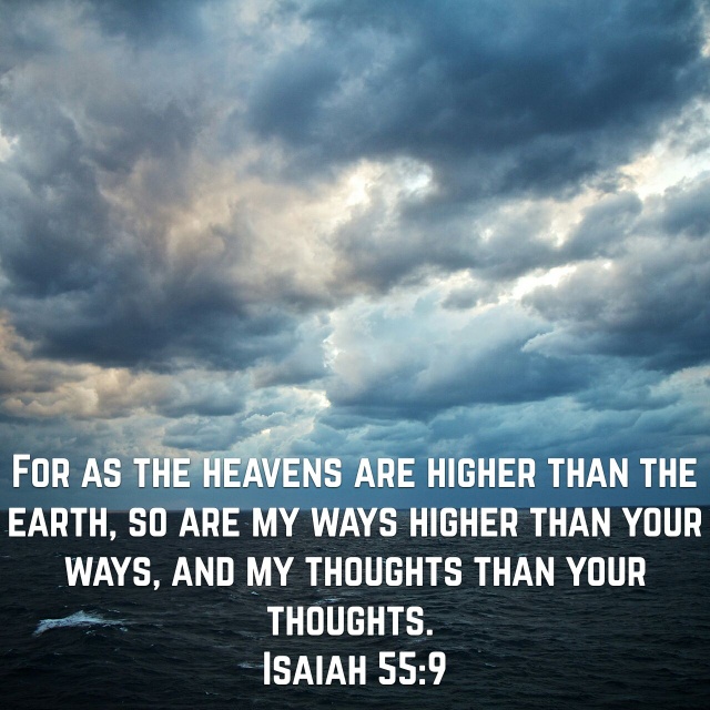For my thoughts are not your thoughts, neither are your ways my ways, saith the LORD. For as the -heavens are higher than the earth, so are my ways higher than your ways, and my thoughts than your thoughts. Isaiah 55:8-9 Sometimes life can seem overwhelming because we don’t have control of every situation. Sometimes … Continue reading Gods Ways