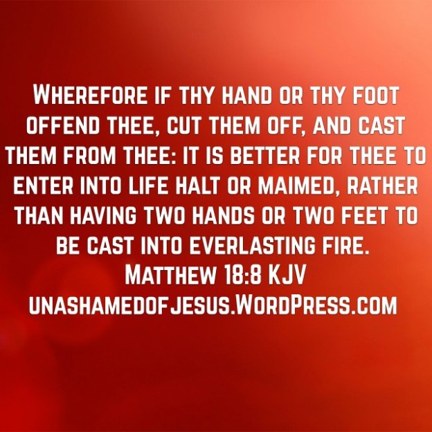 Wherefore if thy hand or thy foot offend thee, cut them off, and cast them from thee: it is better for thee to enter into life halt or maimed, rather than having two hands or two feet to be cast into everlasting fire. Matthew 18:8