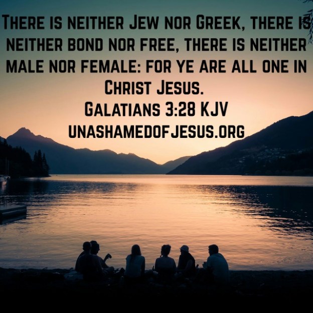 There is neither Jew nor Greek, there is neither bond nor free, there is neither male nor female: for ye are all one in Christ Jesus. Galatians 3:28