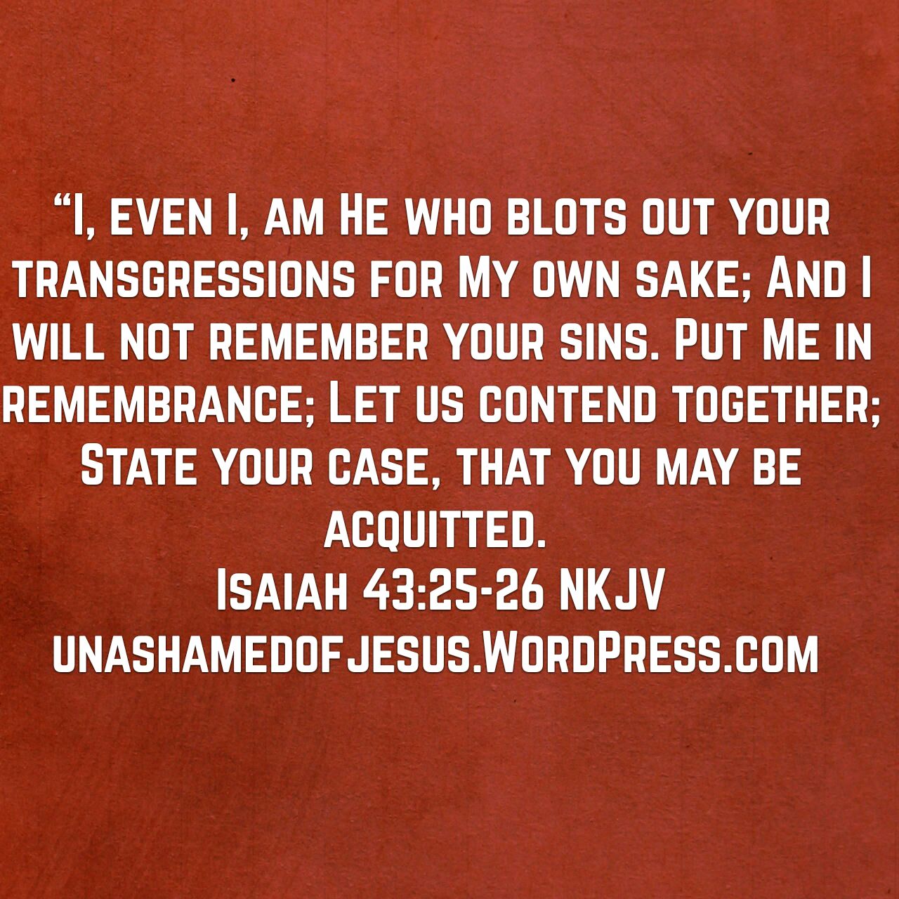 “I, even I, am He who blots out your transgressions for My own sake; And I will not remember your sins. Put Me in remembrance; Let us contend together; State your case, that you may be acquitted.