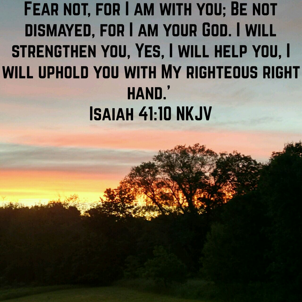 Fear not, for I am with you; Be not dismayed, for I am your God. I will strengthen you, Yes, I will help you, I will uphold you with My righteous right hand.’