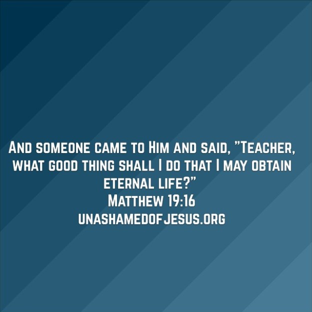 And someone came to Him and said, “Teacher, what good thing shall I do that I may obtain eternal life?” Matthew 19:16