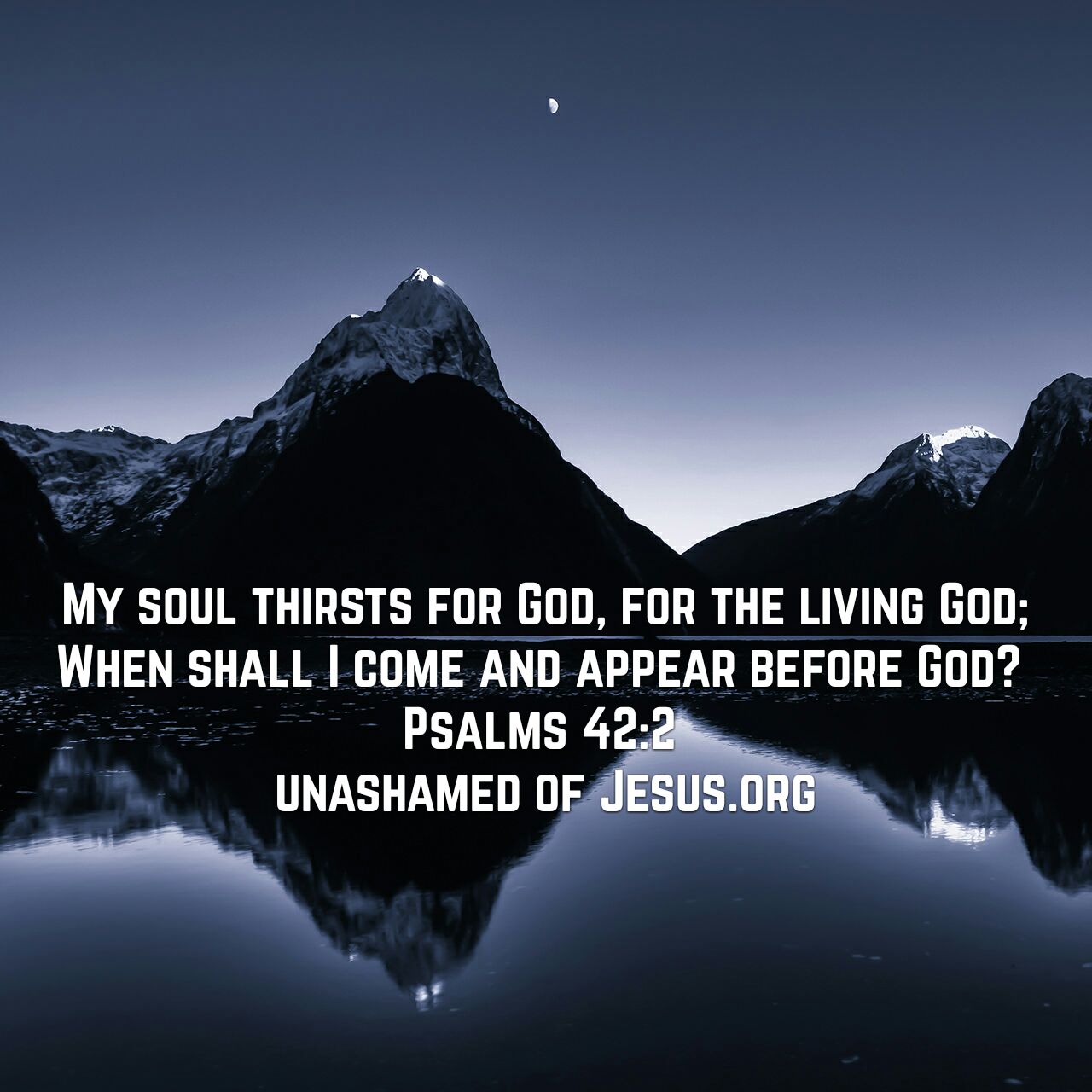 Thirst For God 7 Replies My soul thirsts for God, for the living God; When shall I come and appear before God? Psalms 42:2 NASB http://bible.com/100/psa.42.2.NASB Share this: Click to share on X (Opens in new window) X Click to share on Facebook (Opens in new window) Facebook Like Loading... Related
