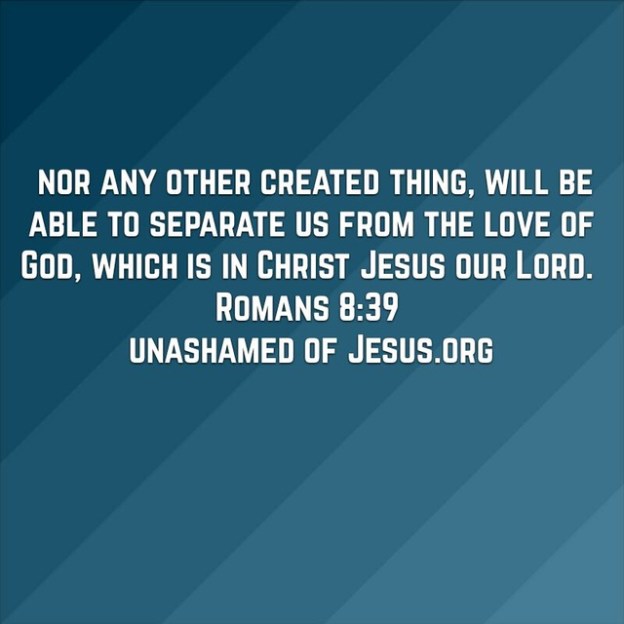 For I am convinced that neither death, nor life, nor angels, nor principalities, nor things present, nor things to come, nor powers, nor height, nor depth, nor any other created thing, will be able to separate us from the love of God, which is in Christ Jesus our Lord. Romans 8:38-39