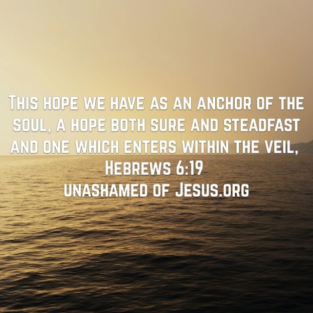 This hope we have as an anchor of the soul, a hope both sure and steadfast and one which enters within the veil Hebrews 6:19