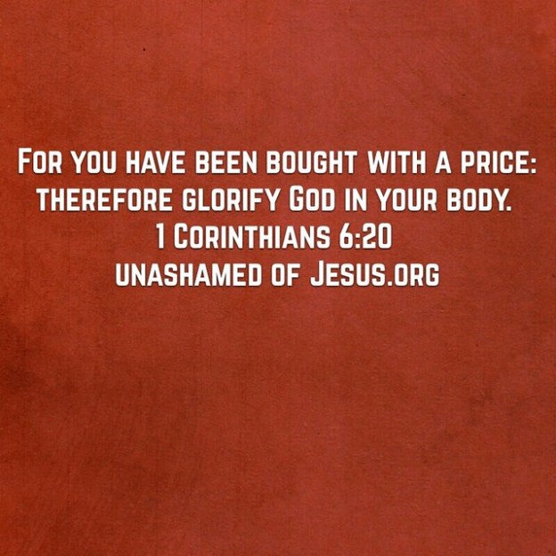 For you have been bought with a price: therefore glorify God in your body. 1 Corinthians 6:20