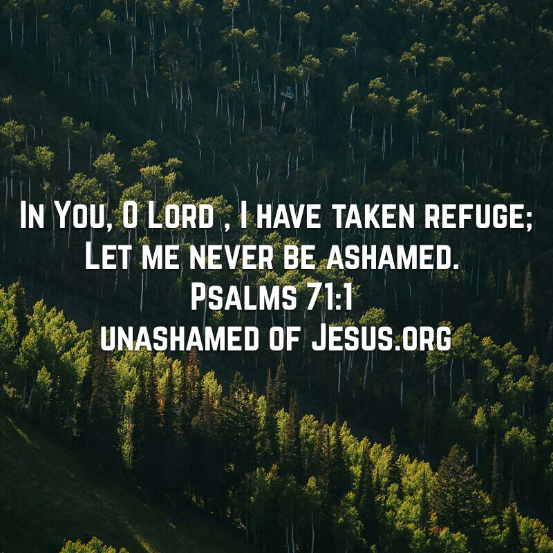 Never Be Ashamed Leave a reply In You, O Lord , I have taken refuge; Let me never be ashamed. Psalms 71:1 NASB http://bible.com/100/psa.71.1.NASB Share this: Click to share on X (Opens in new window) X Click to share on Facebook (Opens in new window) Facebook Like Loading... Related