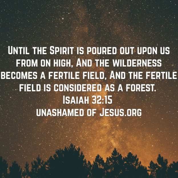 Until the Spirit is poured out upon us from on high, And the wilderness becomes a fertile field, And the fertile field is considered as a forest. Isaiah 32:15
