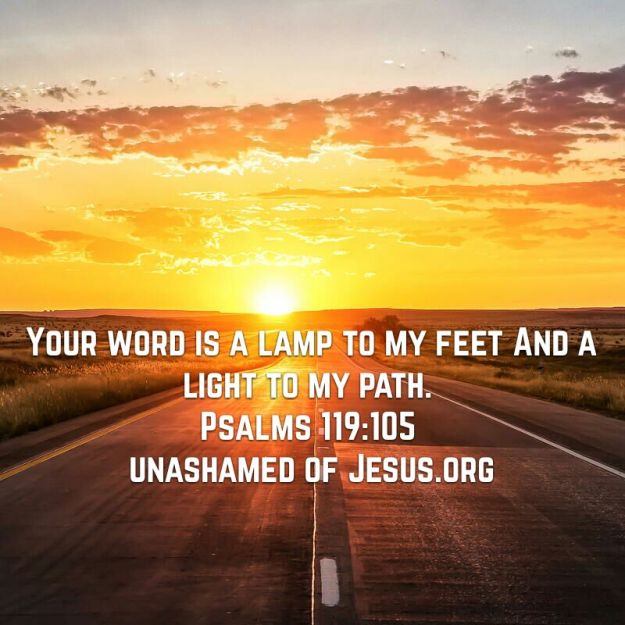 Lamp To My Feet Leave a reply Your word is a lamp to my feet And a light to my path. Psalms 119:105 NASB http://bible.com/100/psa.119.105.NASB Share this: Click to share on X (Opens in new window) X Click to share on Facebook (Opens in new window) Facebook Like Loading... Related