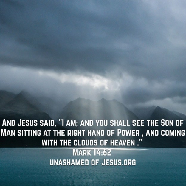 And Jesus said, “I am; and you shall see THE SON OF MAN SITTING AT THE RIGHT HAND OF POWER, and COMING WITH THE CLOUDS OF HEAVEN Mark 14:62