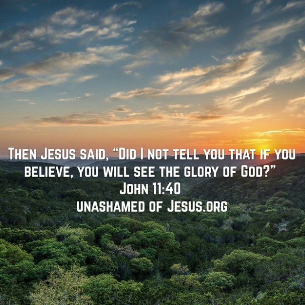 Then Jesus said, “Did I not tell you that if you believe, you will see the glory of God?” John 11:40
