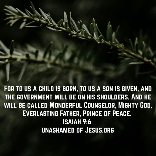 Son Is Given 7 Replies For to us a child is born, to us a son is given, and the government will be on his shoulders. And he will be called Wonderful Counselor, Mighty God, Everlasting Father, Prince of Peace. Isaiah 9:6 NIV https://bible.com/bible/111/isa.9.6.NIV Share this: Click to share on X (Opens in new window) X Click to share on Facebook (Opens in new window) Facebook Like Loading... Related