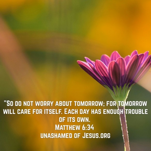 Jesus taught us not to worry about tomorrow because today has enough problems of its own! When we look to far in the future, we miss out on the blessings of today. We can’t take any way for granted, we need to stop and reflect on each day and thank God for his blessings.