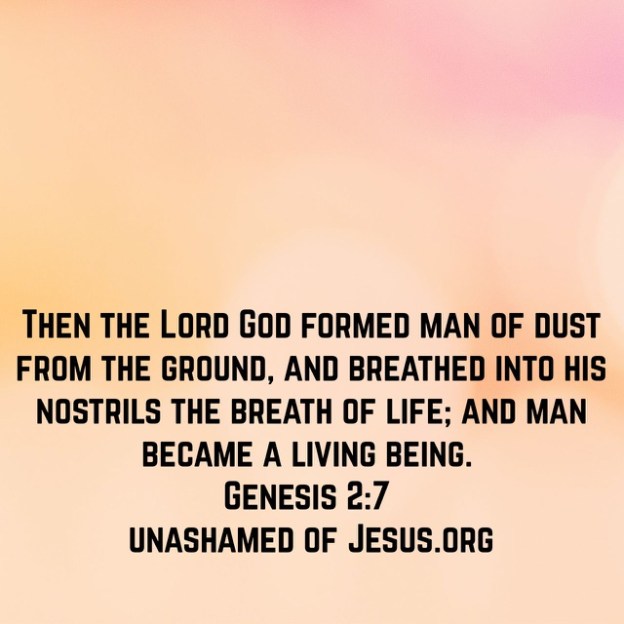 Then the LORD God formed man of dust from the ground, and breathed into his nostrils the breath of life; and man became a living being. Genesis 2:7