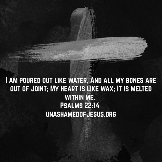I am poured out like water, And all my bones are out of joint; My heart is like wax; It is melted within me.