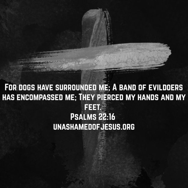 For dogs have surrounded me; A band of evildoers has encompassed me; They pierced my hands and my feet.