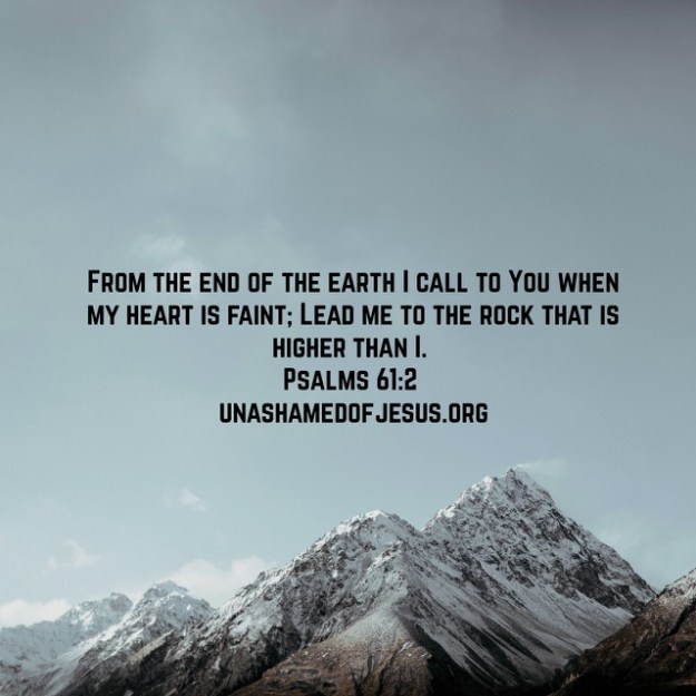 From the end of the earth I call to You when my heart is faint; Lead me to the rock that is higher than I.