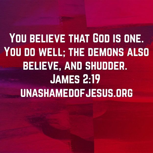 You believe that God is one. You do well; the demons also believe, and shudder.
