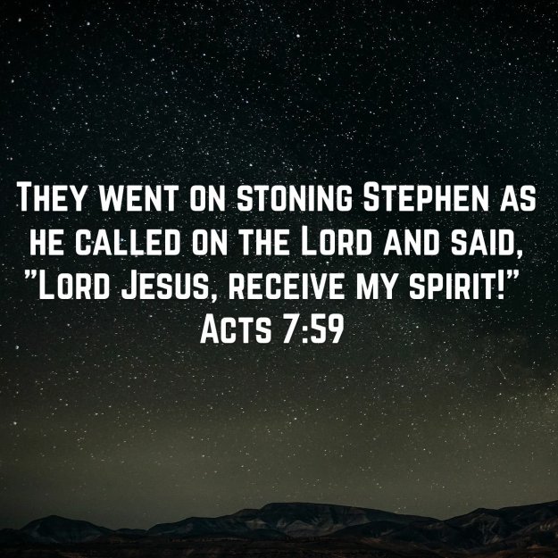They went on stoning Stephen as he called on the Lord and said, “Lord Jesus, receive my spirit!”
