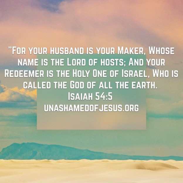 For your husband is your Maker, Whose name is the LORD of hosts; And your Redeemer is the Holy One of Israel, Who is called the God of all the earth. Isaiah 54:5