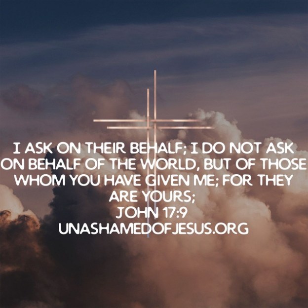 I ask on their behalf; I do not ask on behalf of the world, but of those whom You have given Me; for they are Yours; John 17:9