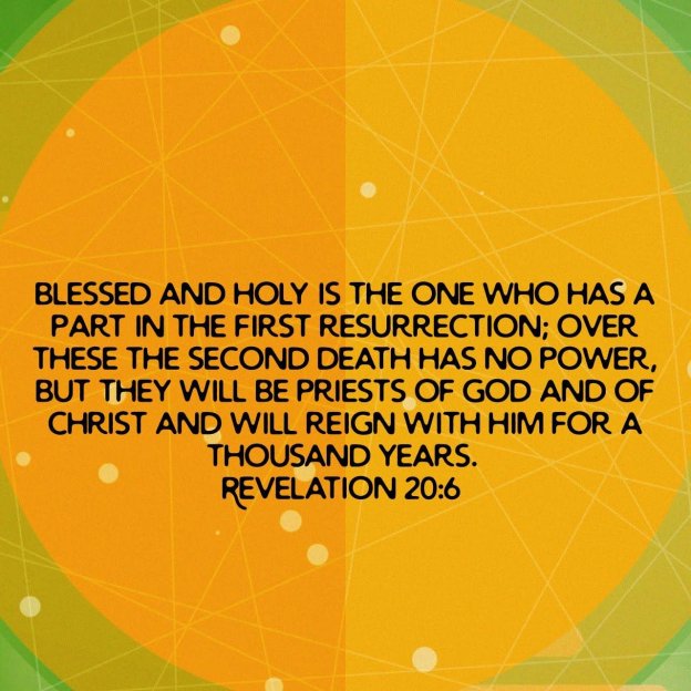Then I saw thrones, and they sat on them, and judgment was given to them. And I saw the souls of those who had been beheaded because of their testimony of Jesus and because of the word of God, and those who had not worshiped the beast or his image, and had not received the mark on their forehead and on their hand; and they came to life and reigned with Christ for a thousand years. The rest of the dead did not come to life until the thousand years were completed. This is the first resurrection. Blessed and holy is the one who has a part in the first resurrection; over these the second death has no power, but they will be priests of God and of Christ and will reign with Him for a thousand years.Revelation 20:4-6
