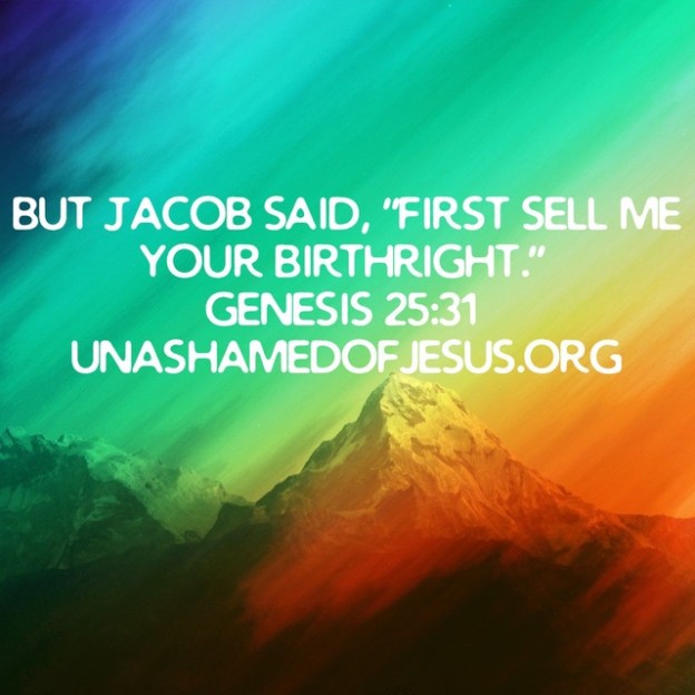 But Jacob said, “First sell me your birthright.” Genesis 25:31