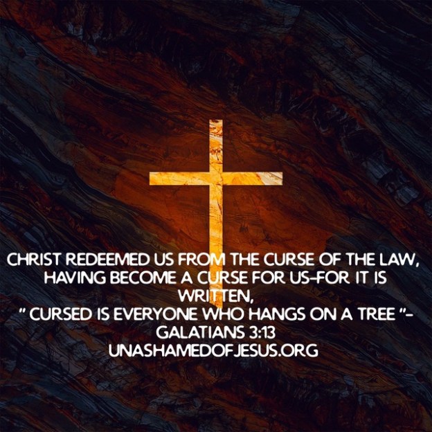 Christ redeemed us from the curse of the Law, having become a curse for us– for it is written, “CURSED IS EVERYONE WHO HANGS ON A TREE “—Galatians 3:13