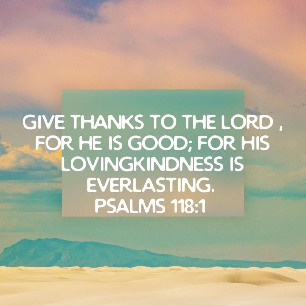 Give thanks to the Lord , for He is good; For His lovingkindness is everlasting.