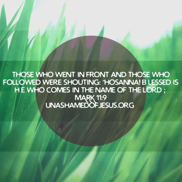 And many spread their coats in the road, and others spread leafy branches which they had cut from the fields. Those who went in front and those who followed were shouting: “Hosanna! BLESSED IS HE WHO COMES IN THE NAME OF THE LORD; Mark 11:8-9