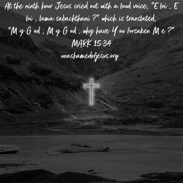 At the ninth hour Jesus cried out with a loud voice, “E loi , E loi , lama sabachthani ?” which is translated, “M y G od , M y G od , why have Y ou forsaken M e ?”