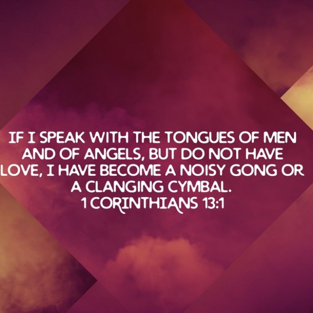 If I speak with the tongues of men and of angels, but do not have love, I have become a noisy gong or a clanging cymbal. 1 Corinthians 13:1