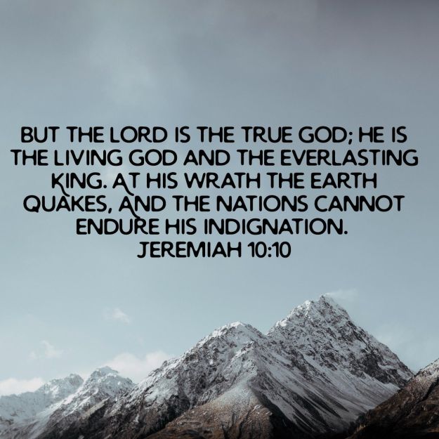But the Lord is the true God; He is the living God and the everlasting King. At His wrath the earth quakes, And the nations cannot endure His indignation.