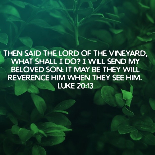 Then said the lord of the vineyard, What shall I do? I will send my beloved son: it may be they will reverence him when they see him. Luke 20:13