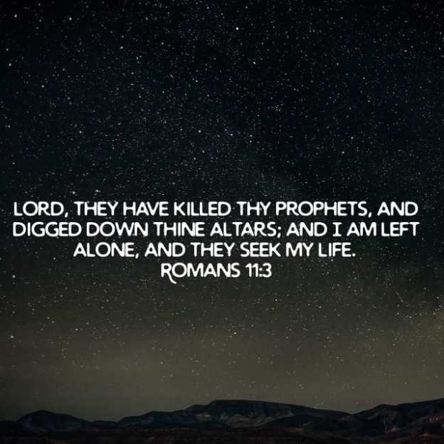 Lord, they have killed thy prophets, and digged down thine altars; and I am left alone, and they seek my life. Romans 11:3