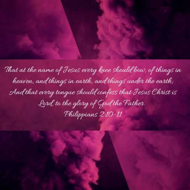 Wherefore God also hath highly exalted him, and given him a name which is above every name: That at the name of Jesus every knee should bow, of things in heaven, and things in earth, and things under the earth; And that every tongue should confess that Jesus Christ is Lord, to the glory of God the Father. Philippians 2:9-11