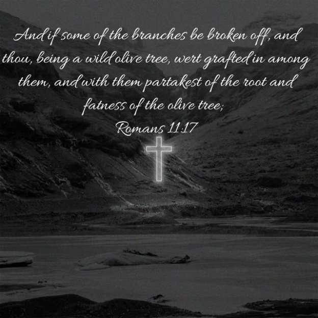 For if the firstfruit be holy, the lump is also holy: and if the root be holy, so are the branches. And if some of the branches be broken off, and thou, being a wild olive tree, wert graffed in among them, and with them partakest of the root and fatness of the olive tree; Romans 11:16-17