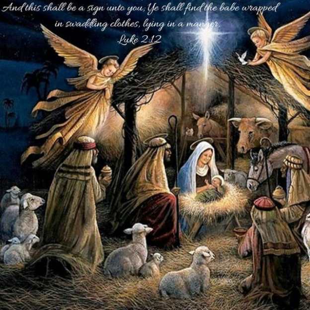 And, lo, the angel of the Lord came upon them, and the glory of the Lord shone round about them: and they were sore afraid. And the angel said unto them, Fear not: for, behold, I bring you good tidings of great joy, which shall be to all people. For unto you is born this day in the city of David a Saviour, which is Christ the Lord. And this shall be a sign unto you; Ye shall find the babe wrapped in swaddling clothes, lying in a manger. Luke 2:9-12