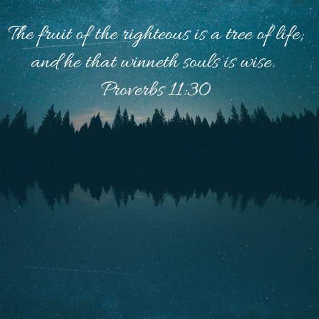 The fruit of the righteous is a tree of life; and he that winneth souls is wise. Proverbs 11:30