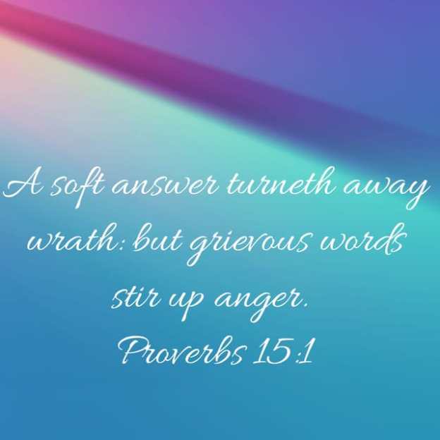 A soft answer turneth away wrath: but grievous words stir up anger Proverbs 15:1