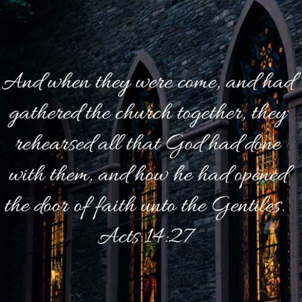And when they were come, and had gathered the church together, they rehearsed all that God had done with them, and how he had opened the door of faith unto the Gentiles. And there they abode long time with the disciples. Acts 14:27-28