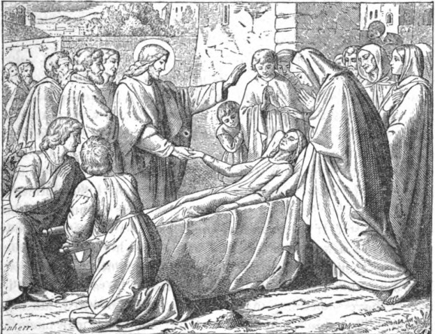 And it came to pass the day after, that he went into a city called Nain; and many of his disciples went with him, and much people. Now when he came nigh to the gate of the city, behold, there was a dead man carried out, the only son of his mother, and she was a widow: and much people of the city was with her. And when the Lord saw her, he had compassion on her, and said unto her, Weep not.And he came and touched the bier: and they that bare him stood still. And he said, Young man, I say unto thee, Arise. Luke 7:11-14