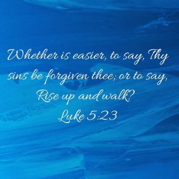 And the scribes and the Pharisees began to reason, saying, Who is this which speaketh blasphemies? Who can forgive sins, but God alone? But when Jesus perceived their thoughts, he answering said unto them, What reason ye in your hearts? Whether is easier, to say, Thy sins be forgiven thee; or to say, Rise up and walk? Luke 5:21-23