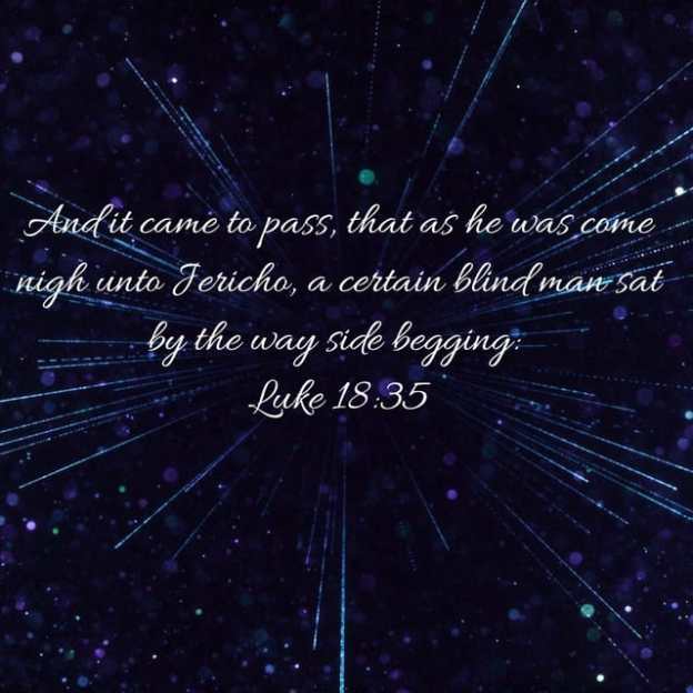 And it came to pass, that as he was come nigh unto Jericho, a certain blind man sat by the way side begging: And hearing the multitude pass by, he asked what it meant. And they told him, that Jesus of Nazareth passeth by. And he cried, saying, Jesus, thou Son of David, have mercy on me. And they which went before rebuked him, that he should hold his peace: but he cried so much the more, Thou Son of David, have mercy on me. Luke 18:35-39
