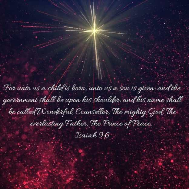 For unto us a child is born, unto us a son is given: and the government shall be upon his shoulder: and his name shall be called Wonderful, Counseller, The mighty God, The everlasting Father, The Prince of Peace. Isaiah 9:6
