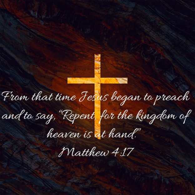 From that time Jesus began to preach, and to say, Repent: for the kingdom of heaven is at hand. Matthew 4:17